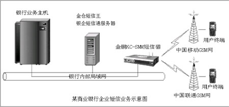 2004年7月,某地級市商業(yè)銀行采用了金鵬KC-SMM短信貓和“金倉短信王銀企短信通解決方案”軟件搭建了企業(yè)級的短信服務體系。鑒于業(yè)務量并非很大,所以盡管整個商業(yè)銀行有近三百個辦公網(wǎng)點,在設備上該商業(yè)銀行仍然只采用一套軟硬產品!敖瘗i的短信平臺產品目前在北方鋪開的時間并不長,所以在價格上有一定的傾斜,我們商業(yè)銀行購買的產品,價格比較便宜!痹撋虡I(yè)銀行信息部某負責人說。