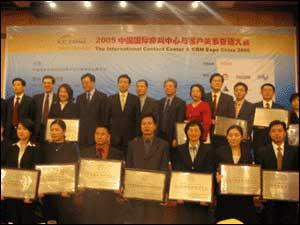 賽迪呼叫榮獲“2005中國(guó)最佳外包呼叫中心呼出服務(wù)獎(jiǎng)” (第二排正中)