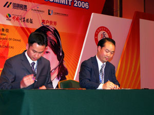 2006年9月19日,上海 值“2006(第二屆)中國呼叫中心高峰論壇”舉辦之機(jī),今天,中國電子商會(huì)呼叫中心與客戶關(guān)系管理專業(yè)委員會(huì)(CNCCA)與大連軟件園股份有限公司(DLSP)在上海正式簽署戰(zhàn)略合作,加強(qiáng)彼此的交流和溝通,共同在大連軟件園組織開展呼叫中心的產(chǎn)業(yè)發(fā)展和技術(shù)研究工作。積極推動(dòng)大連軟件園建設(shè)成為中國呼叫中心產(chǎn)業(yè)發(fā)展基地。