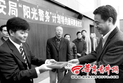 昨日下午2時許,重慶市公安局“陽光警務(wù)”特約顧問聘請儀式上,重慶市公安局副局長、政治部主任彭長健頒發(fā)了特約顧問聘書。重慶市社會科學院研究員孫元明等18人成為我市警方首批聘請的“陽光警務(wù)”特約顧問。他們將作為警方的“智囊團”直接參與、監(jiān)督警務(wù)活動,聘任時間為兩年。