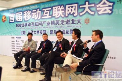2007年12月19日,首屆移動(dòng)互聯(lián)網(wǎng)大會(huì)在中國(guó)的北京大學(xué)隆重舉辦。由手機(jī)圈傳媒主辦的本次活動(dòng)以“互動(dòng)大學(xué)校園,普及移動(dòng)互聯(lián)網(wǎng)”為主題,以“100位精英走進(jìn)北大”為活動(dòng)主線。包括中國(guó)移動(dòng)研究院、英特爾、GOOGLE、NOKIA、MOTO、聯(lián)想研究院、ARM、方正阿帕比、空中網(wǎng)、3G門戶、手機(jī)騰訊網(wǎng)、手機(jī)搜狐網(wǎng)、手機(jī)新浪網(wǎng)、大頭網(wǎng)、萬(wàn)蝶網(wǎng)、美科互動(dòng)、dotMobi公司等100多家移動(dòng)互聯(lián)網(wǎng)領(lǐng)先企業(yè)均參與到本次論壇。