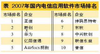 如果說(shuō)在2007年以前,電信應(yīng)用軟件市場(chǎng)考察的更多是企業(yè)業(yè)務(wù)擴(kuò)展能力的話(huà),2007年可以說(shuō)是電信應(yīng)用軟件的一個(gè)分水嶺。在3G建設(shè)中,產(chǎn)品研發(fā)能力、企業(yè)的產(chǎn)品線(xiàn)以及項(xiàng)目執(zhí)行能力等幾項(xiàng)指標(biāo)在市場(chǎng)的競(jìng)爭(zhēng)中也將占據(jù)主要的位置。研發(fā)出滿(mǎn)足客戶(hù)需求的產(chǎn)品、提供全套的產(chǎn)品服務(wù)和快速可靠的完成項(xiàng)目,將使企業(yè)在市場(chǎng)競(jìng)爭(zhēng)中占據(jù)更多的市場(chǎng)份額。