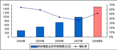 1、2008年中國移動(dòng)通信增值業(yè)務(wù)市場規(guī)模預(yù)測