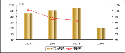 圖1 2004-2008年中國電信行業(yè)應(yīng)用市場規(guī)模