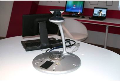 在耐心聽完介紹后,禁不住誘惑,我便親自做了現(xiàn)場(chǎng)體驗(yàn),原來這套系統(tǒng)所使用的360o攝像頭不同于一般的攝像頭,它集4個(gè)攝像頭以及USB設(shè)備為一體,不改變位置就能輕松實(shí)現(xiàn)360度全景覆蓋,讓所有人真正面對(duì)面交流。而投影儀的界面設(shè)定更是人性化,界面分上下兩部份,上半部分顯示的是PPT內(nèi)容和發(fā)言者,下半部分顯示的是與會(huì)人員。而它的智能語(yǔ)音識(shí)別系統(tǒng)更是讓人叫絕,投影儀上的發(fā)言區(qū)頭像根據(jù)發(fā)言者的聲音自動(dòng)更換,而不受人聲以外的任何聲音的干擾。系統(tǒng)并附帶情景解說詞,系統(tǒng)會(huì)自動(dòng)介紹與會(huì)人員所在地。在投放PPT界面旁邊有個(gè)信息欄,在上面能夠看到負(fù)責(zé)人的在線信息,并且可以選擇最合適的方式進(jìn)行溝通,不但可以發(fā)即時(shí)消息和傳輸文件,還可以進(jìn)行語(yǔ)音通話,甚至可以直接用語(yǔ)音連接辦公室電話,只要有網(wǎng)絡(luò),隨便哪里都可以接得到辦公室電話。