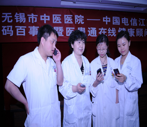 5月25日,江蘇省無(wú)錫市中醫(yī)醫(yī)院18位專家級(jí)醫(yī)師接受了中國(guó)電信江蘇公司的聘請(qǐng),成為無(wú)錫首批電話在線的健康顧問(wèn)。全省電信用戶只要撥打號(hào)碼百事通118114,即可得到在線醫(yī)療、健康專業(yè)指導(dǎo)。118114健康平臺(tái)還能為出院病人提供康復(fù)指導(dǎo)、動(dòng)態(tài)跟蹤、復(fù)診提醒等健康管理服務(wù)。通過(guò)這一形式,能盡快實(shí)現(xiàn)一個(gè)醫(yī)前、醫(yī)中、醫(yī)后服務(wù)鏈。圖為無(wú)錫市中醫(yī)醫(yī)院的健康顧問(wèn)們?cè)跒榛颊呒w電話會(huì)診。
