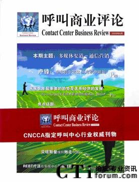 《呼叫商業(yè)評論》(Contact Center Business Review )是一本服務(wù)于呼叫中心行業(yè)企業(yè)高管人群的高端雜志,是CNCCA呼叫中心及客戶關(guān)系管理協(xié)會指定呼叫中心行業(yè)權(quán)威刊物,可作為高端客戶群體的行業(yè)指南,洞悉行業(yè)新舉措,法規(guī)新動態(tài)的風(fēng)向標(biāo)。