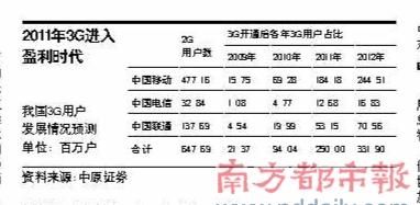 圖:我國3G用戶發(fā)展情況預測