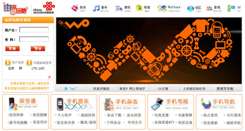 該網(wǎng)站分為資訊、音樂、游戲、彩信、WoStore、社區(qū)、影視、3G等幾類。其中,進入WoStore類別還有通信類、信息類、娛樂類、商務類、音樂類的細分,主要提供聯(lián)通目前已有的相關(guān)增值業(yè)務。