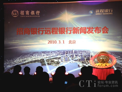 CTI論壇(ctiforum)3月2日消息(記者 馮慧平):3月1日,招商銀行在北京大飯店召開新聞發(fā)布會(huì),推出新一代銀行服務(wù)——遠(yuǎn)程銀行。中國人壽、華為、國泰君安、招商證券、太平洋保險(xiǎn)、泰康人壽、華夏基金、南方基金等國內(nèi)金融單位與知名企業(yè)的高管,及該行客戶代表近300人出席新聞發(fā)布會(huì)。