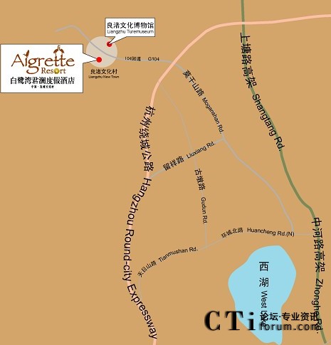 杭州蕭山國際機場(南京、湖州方向)——杭州繞城公路(留下、臨安方向,莫干山路收費站出口)——新104國道(大陸出口)——良渚文化村——杭州白鷺灣君瀾度假酒店
