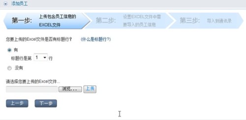 注意:根據(jù)申請(qǐng)時(shí)配置的員工額度上傳自定義通訊錄excel文件;