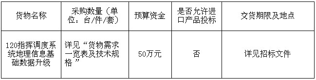 項(xiàng)目名稱(chēng):120指揮調(diào)度系統(tǒng)地理信息基礎(chǔ)數(shù)據(jù)升級(jí)采購(gòu)項(xiàng)目