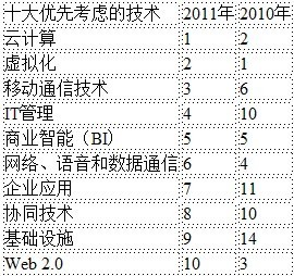 2011年CIO十大優(yōu)先考慮的技術(shù)排名