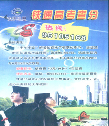 赤峰鐵通積極做好高考查分95105168熱線宣傳工作
