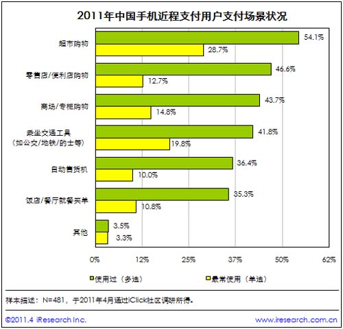 艾瑞咨詢:中國手機近程支付場景主要為超市和便利店