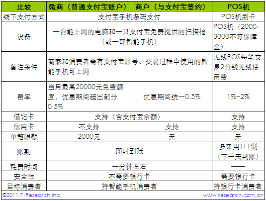 、 可用支付寶手機(jī)條碼支付的消費者,必須同時滿足擁有智能手機(jī)、手機(jī)內(nèi)安裝有支付寶客戶端以及注冊有支付寶賬號三個條件,這也間接導(dǎo)致潛在用戶規(guī)模相比POS機(jī)偏小。