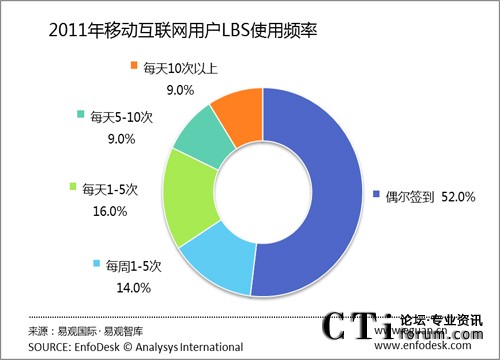 2011年移動(dòng)互聯(lián)網(wǎng)用戶(hù)使用LBS活躍度不足