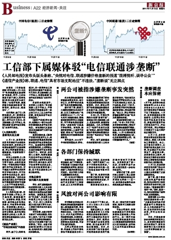 工信部下屬兩家媒體駁電信聯(lián)通涉嫌壟斷報道