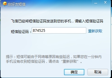 圖:飛信需要發(fā)送短信驗(yàn)證碼