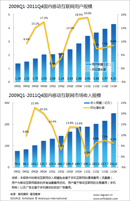2011年國內(nèi)移動互聯(lián)網(wǎng)用戶規(guī)模突破4億