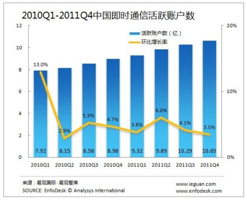 中國(guó)即時(shí)通信活躍賬戶數(shù)達(dá)到10.65億