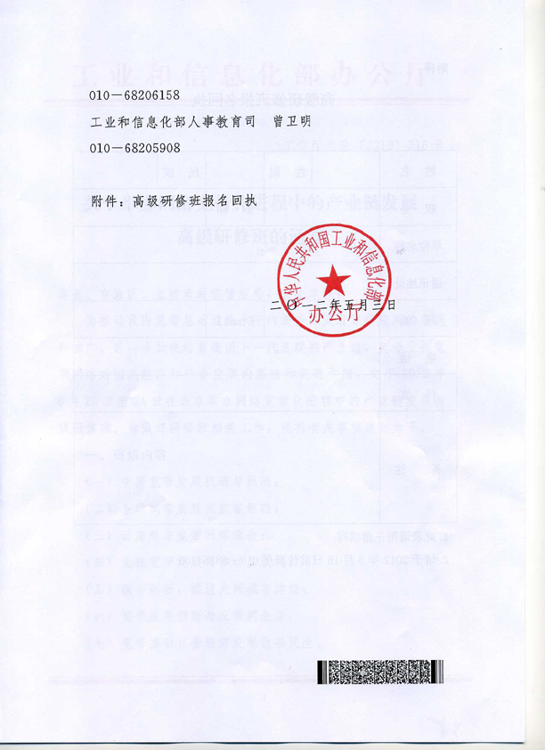 報名方式:請各單位盡快確定參加研修人員,于2012年5月16日前將加蓋單位印章的報名回執(zhí)(附后)傳真至工業(yè)和信息化部人才交流中心(010-88254205)。5月17日前,各單位所報送研修人員的研修資格審查結(jié)果將反饋給各研修人員。