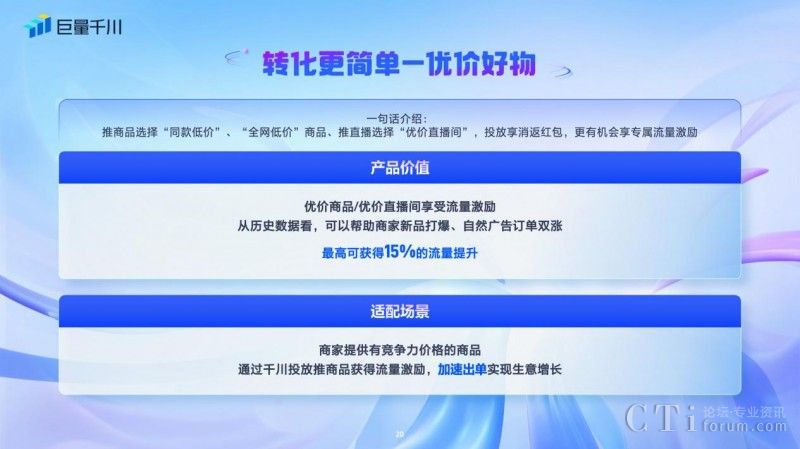 五、「優(yōu)價(jià)貨品玩法 」:優(yōu)價(jià)貨品商家也可以參與優(yōu)價(jià)品消耗排位賽和智能優(yōu)惠券活動(dòng)玩法。平臺(tái)推出優(yōu)價(jià)推商品和優(yōu)價(jià)直播間巔峰排位賽,商家累計(jì)最高可享25萬(wàn)消返紅包。對(duì)于使用智能優(yōu)惠券投放的商家,現(xiàn)金增量消耗達(dá)標(biāo)可獲得最高10000元的消返紅包獎(jiǎng)勵(lì)。