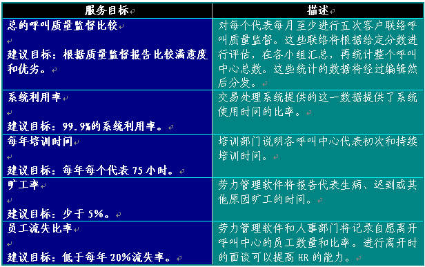 附錄3舉出了完整的衡量標(biāo)準(zhǔn)。這些工作評(píng)估標(biāo)準(zhǔn)可以通過各種辦法獲得,包括ACD、IVR、客戶關(guān)系管理(CSM)軟件和質(zhì)量監(jiān)督及勞力管理報(bào)告。