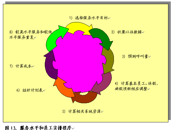 要準(zhǔn)確預(yù)測員工需求量,至少需要四個(gè)月的相關(guān)數(shù)據(jù)。這些數(shù)據(jù)將收錄在自動(dòng)工作表制訂工具中。圖13舉例說明了呼叫中心可采取的此類步驟。