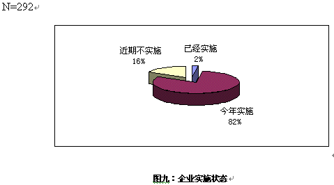 對大多數(shù)企業(yè)來說,對CRM還處于關(guān)注階段,只有7家企業(yè)表示已經(jīng)開始實(shí)施,在的電話訪問中,了解到這7家企業(yè)的實(shí)施的主要是在渠道管理和客戶呼叫中心等方面,但表示今年會開始實(shí)施的卻超過8成。