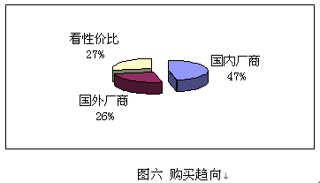 鑒于國內(nèi)并沒有知名度很高的CRM實(shí)施廠商,而國外的著名廠商在國內(nèi)的品牌宣傳也不足,所以調(diào)查表中只設(shè)了:國內(nèi)廠商、國外廠商和根據(jù)性價比進(jìn)行選擇三個項目,與購買能力對照,預(yù)期實(shí)施金額在100萬以下的企業(yè),一般側(cè)重國內(nèi)廠商,而實(shí)施金額在100萬以上企業(yè)則側(cè)重國外企業(yè)。