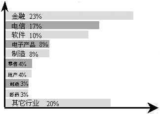 CRM的應(yīng)用已經(jīng)覆蓋了幾乎所有的行業(yè),典型行業(yè)客戶應(yīng)用案例和效果為其他企業(yè)采取行動提供了樣板。這些行業(yè)包括銀行、保險(xiǎn)、證券、基金、電信、郵政、制造、醫(yī)藥、零售、地產(chǎn)、IT、傳媒、交通和物流等。在整個(gè)市場中,主要行業(yè)的占有率情況參見下圖: