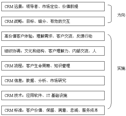 對(duì)于大多數(shù)公司而言,一個(gè)產(chǎn)品戰(zhàn)略很好理解。但是CRM戰(zhàn)略卻不太讓人理解。這是因?yàn)樵贑RM產(chǎn)業(yè)界、學(xué)術(shù)界對(duì)"CRM是什么"、"CRM戰(zhàn)略由什么組成"還沒(méi)有達(dá)成共識(shí)。因此,以下所闡述的CRM戰(zhàn)略并不一定勝人一籌,但我們會(huì)努力全面論述CRM戰(zhàn)略框架。我們認(rèn)為一個(gè)CRM戰(zhàn)略必須包括以下幾個(gè)內(nèi)容:定義價(jià)值前提、定義客戶戰(zhàn)略、企業(yè)變革計(jì)劃。