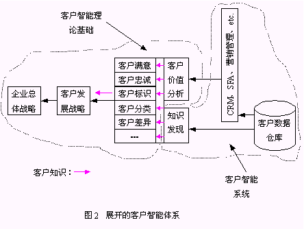Smith將客戶智能與客戶分析等同起來。BO公司的Paul Clark在分析客戶智能與CRM的關(guān)系時(shí)認(rèn)為:客戶智能是CRM的智慧所在(the