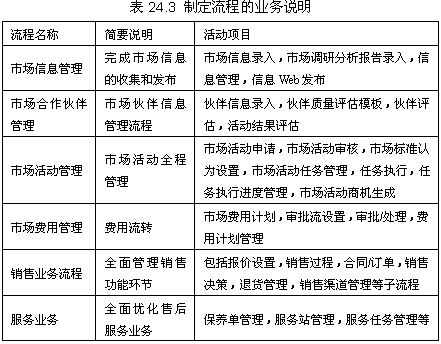 根據(jù)CRM軟件的總體目標(biāo),項(xiàng)目組詳細(xì)審核每個(gè)業(yè)務(wù)的流程,并按照流程對(duì)軟件進(jìn)行定制。所制定的流程包括三大業(yè)務(wù)領(lǐng)域的業(yè)務(wù),見表24.3。