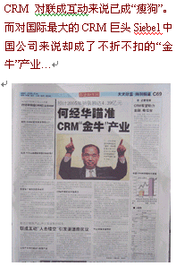 而此前Siebel在中國市場一直采取"大鯨不游淺水"策略,保持低調(diào),冷眼旁觀,并未投入大量人力財(cái)力在中國市場,此次巨資籠絡(luò)何經(jīng)華,是否Siebel認(rèn)為中國CRM這個(gè)"淺池子"開始加深了?