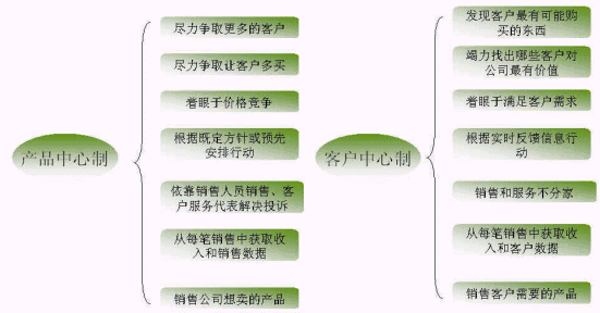 蓋洛普認為新型的企業(yè)與客戶的關(guān)系應(yīng)當(dāng)是以"客戶為中心"與客戶的互動關(guān)系,通過滿足客戶需求提高客戶滿意度來吸引和留住客戶,從而建立和保持企業(yè)的競爭優(yōu)勢。這其實就是從產(chǎn)品中心制到客戶中心制的演變的體現(xiàn),如下圖: