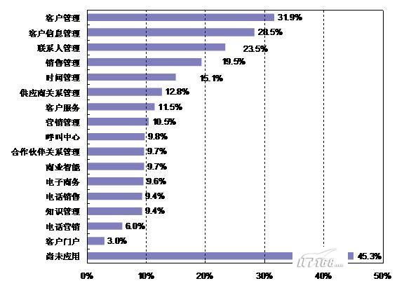 Logix(4.1%)和Microsoft CRM(4.1%)等;另有24.7%的企業(yè)是自主開(kāi)發(fā)的CRM系統(tǒng)。