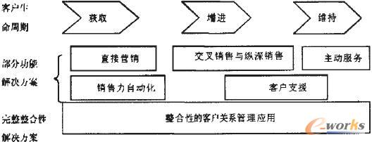 Kalakota and Robinson認(rèn)為,客戶關(guān)系管理主要包括了三個(gè)不同的階段,分別為獲取(Acquisition)、增進(jìn)(Enhancement)與維持(Retention)。而這三個(gè)各異的部份,也正和客戶的不同生命周期階段不謀而合。