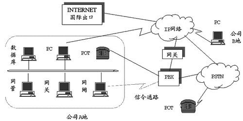 企業(yè)已對原來的VPN網(wǎng)絡(luò)有了很大投入,再增加一部分網(wǎng)關(guān)設(shè)備即可實現(xiàn)IP電話、傳真的功能,這是綜合利用資源的有效途徑。在企業(yè)實現(xiàn)IP電話,除了與Internet互連外,也可以利用原來VPN專線組網(wǎng),而不用通過Internet。這樣可能牽涉到設(shè)備、軟件的專用性問題,不能充分共享公眾網(wǎng)的資源,與其他網(wǎng)絡(luò)的互通性也差些。
