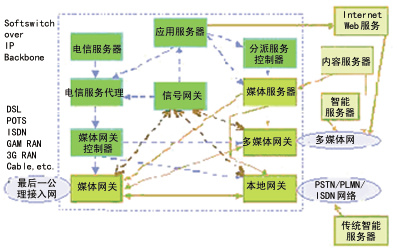 E1、DSL、Ethernet到無線接入技術GSM/GPRS、PHS、W-CDMA以至未來的接入技術;支持與各種傳統(tǒng)電信業(yè)務網(wǎng)絡如PSTN和PLMN網(wǎng)絡以信令網(wǎng)節(jié)點方式互聯(lián),支持與IP業(yè)務網(wǎng)絡(如VoIP)和多媒體通信網(wǎng)絡(如Internet)互聯(lián);與接入網(wǎng)絡的信令和傳統(tǒng)業(yè)務網(wǎng)絡的信令(SS7)無縫互聯(lián);支持話音、遠程會議、多媒體通信等基于會話的通信業(yè)務;