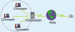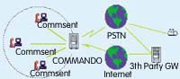 COMMANDO系統(tǒng)提供與其他同類系統(tǒng)之間的互連互通功能,通過(guò)選擇不同的模塊可以輕松實(shí)現(xiàn)與CISCO、CLARENT、COMMSENT、WHEREVER等VoIP系統(tǒng)之間的無(wú)縫銜接。