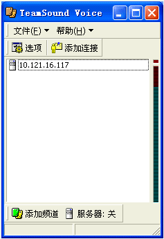 2.基本操作。開服務(wù)器,只需點擊一下“服務(wù)器:開”這個按鈕,你的機器就變成服務(wù)器了,很方便(注意要先設(shè)定默認頻道)。加入你的戰(zhàn)友開了服務(wù),你要加入先點擊“添加連接”,在對話框中要輸入對方的IP和密碼,然后再“添加頻道,在局域網(wǎng)中,則直接“添加頻道”就ok了。