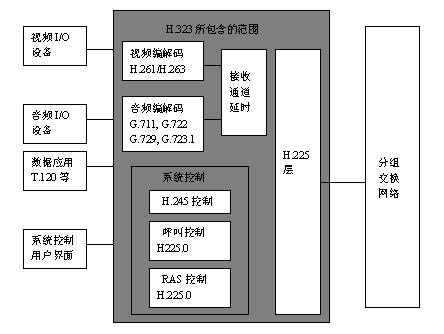 H.323是國際電信聯(lián)盟(ITU)的一個(gè)標(biāo)準(zhǔn)協(xié)議棧,該協(xié)議棧是一個(gè)有機(jī)的整體,根據(jù)功能可以將其分為四類協(xié)議,也就是說該協(xié)議從系統(tǒng)的總體框架(H.323)、視頻編解碼(H.263)、音頻編解碼(H.723.1)、系統(tǒng)控制(H.245)、數(shù)據(jù)流的復(fù)用(H.225)等各方面作了比較祥細(xì)的規(guī)定。