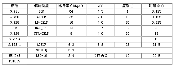 標(biāo)準(zhǔn) 編碼類型 比特率 MOS 復(fù)雜性 時(shí)延 (kbps) (ms) G.711 PCM 64 4.3 1 0.125 G.726 ADPCM