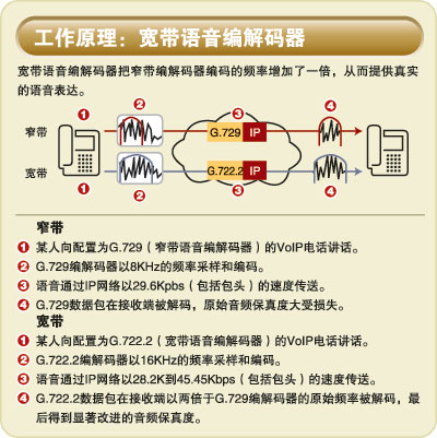 因此,很多已有的VoIP設(shè)備不能支持寬帶編解碼器。幸運(yùn)的是,由于處理器能力不斷提高,寬帶VoIP的好處正在成為越來越多、價(jià)格更低設(shè)備中的選擇。