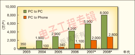 to Phone方式的VoIP巨大生命力。2007年,中國基礎電信業(yè)務對外全面開放的WTO要求大限將到,我國VoIP電信管制政策將會有所松動,外資的壓力肯定會讓未來幾年的VoIP市場呈現(xiàn)充分競爭的局面,將推動市場快速增長。
