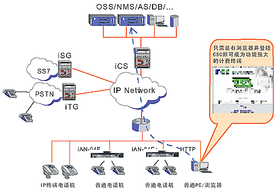 運營商IP話吧系統(tǒng)結構圖(五類線)
