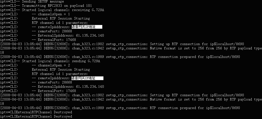 Asterisk與華為8010語音網關的H323連接已經成功建立